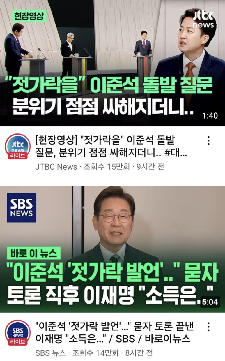 이준석 후보는 민노당 권영국 후보에게 "누군가 여성 그 부위에 젓가락을 꽂는다는 발언을 하면 여성 혐오인가 아닌가"라는 발언을 했고, 권영국 후보는 이 후보의 질문에 악의적인 의도가 있다고 판단했는지 원론적인 답변만 했습니다. 이준석 젓가락 발언은 순식간에 디시, 펨코를 비롯한 온라인 커뮤니티뿐만 아니라 유튜브 쇼츠로도 수없이 확산돼 퍼져나가며 논란이 일고 있는 상황인데요.